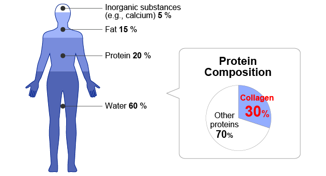 Collagen plays a role as a scaffold that supports cells, and a lubricant that fills the spaces between cells and mediate molecular movements. However, it is known that the cells deteriorate with aging, and the collagen surrounding the cells decreases with age.